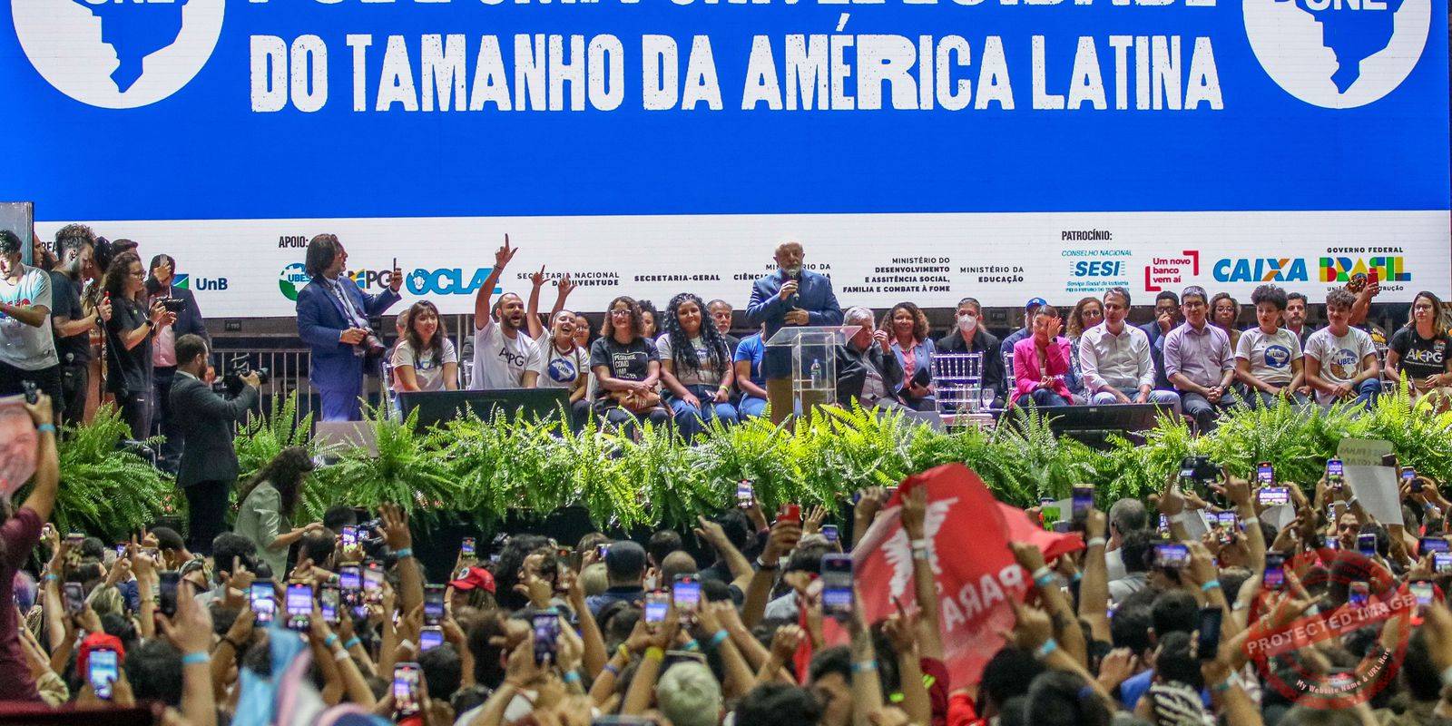 Em seu discurso, Lula também exaltou o vigor do movimento estudantil. “O que motiva a vida humana e o que motiva a nossa capacidade de ser melhor ou não é se a gente tem uma causa ou não tem uma causa”, afirmou. “Eu acho extraordinário a UNE apresentar uma pauta de reivindicações longa, árdua e apimentada”, acrescentou.